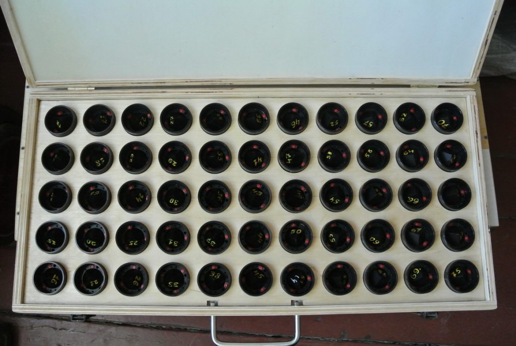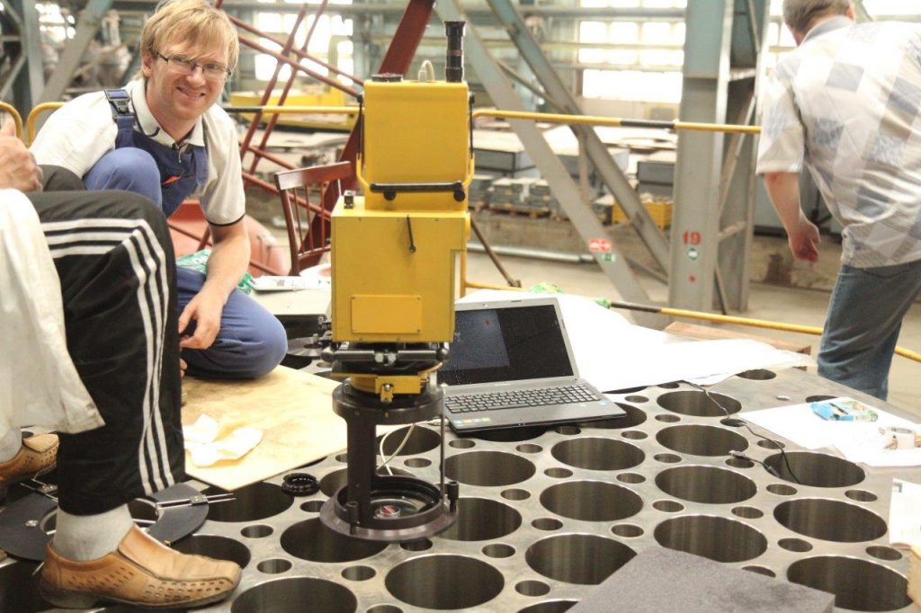 По заказу предприятия «Атоммаш» разработан и успешно применен измерительный комплекс «Лазерный отвес», выполненный на базе прибора «Лазерная струна ЛС-1», предназначенный для контроля отклонения от общей оси удаленных друг от друга отверстий. Были разработаны два варианта прибора: лабораторный вариант ЛО-1 и производственный вариант ДО-1М. Работы проводились на ответственном крупногабаритном изделии, входящем в состав современного атомного реактора нового поколения. Особенностью работы «лазерного отвеса» является то, что контролируемые отверстия узлов реактора расположены вдоль вертикальных осей. Кроме того, контролируемые отверстия находятся на различных уровнях измерительного канала и в ряде задач доступ к отверстиям практически невозможен